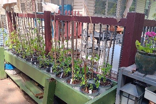 Sorry my picture seems a little blurred… It has been so hot that my greenhouse can officially be called a sunroom. My tomatoes I’ve been growing as an experiment are getting too big and needed to be staked and go outside. So I’ve moved them to the converted donkey tough alongside the deck. We still haven’t had any measurable rain in over a month now. The hawk seems to come everyday now and just sits on the fence while one of my hens seems to be the lookout while the others remain hidden. Still no rain but could be in forecast this week. Let’s hope.